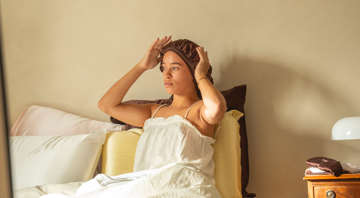 Mocht je merken dat een bonnet toch vaker afzakt bij je, dan raden we aan om deze te combineren met een zijde kussensloop. De twee stoffen glijden dan over elkaar heen, waardoor alles beter op z’n plek blijft.