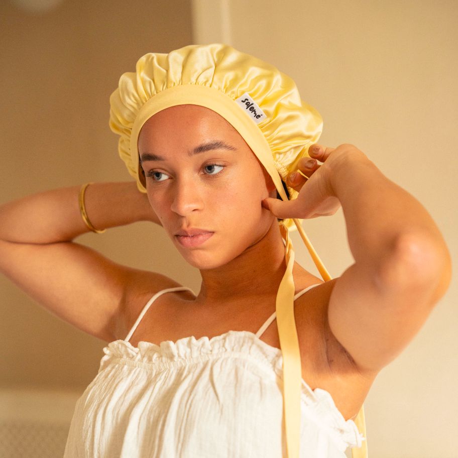 Veel bonnets, kussenslopen en slaapmaskers worden gemaakt van satijn-polyester, een niet-ademend plastic dat statische elektriciteit en pluizend haar kan veroorzaken. Moerbei zijde is daarentegen ademend, zacht en huidvriendelijk, en daardoor de beste keuze voor je huid en haar.